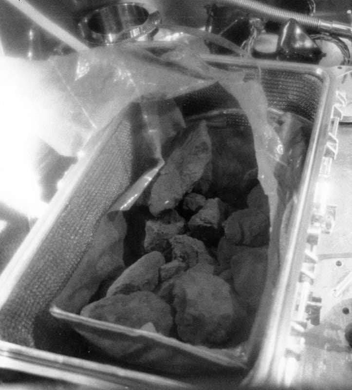 二つのALSRC「ロックボックス」は、月着陸船のコンパートメントに収納されていました。宇宙飛行士が月面に降り立ち、ボックスを取り出し、サンプルを採集しボックスに入れました。そして、ゼロハリバートン製のボックスは、無事に21.6KGの希少な月の石とダストを持ち帰ることができたのです。