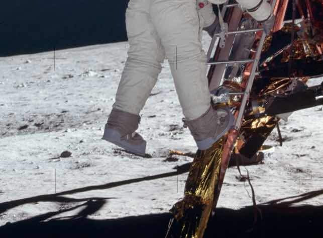 アームストロングは、月着陸船イーグルをとてもゆっくりと着陸させたため、衝撃吸収機能が働かず、イーグルの梯子から月面までオルドリンも共に1Mも下に飛び降りる事になってしまいました。