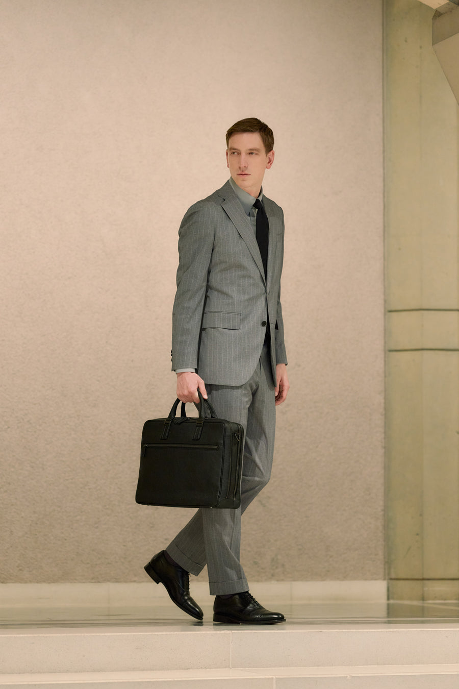 エレガンスと機能美を両立した、プレミアムシュリンクレザーのブリーフバッグ
